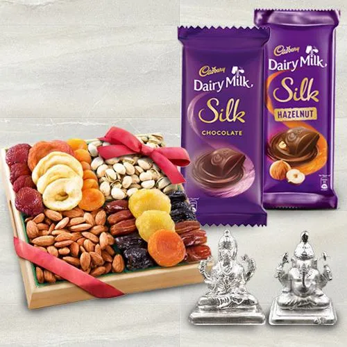 Impress your dear ones by sending this Tempting Gift of N #8203;Dry Fruits and Cadbury Chocolates with Idol on Diwali, and elegantly brighten up their mood instantly. This Deepavali Combo Pack contains: