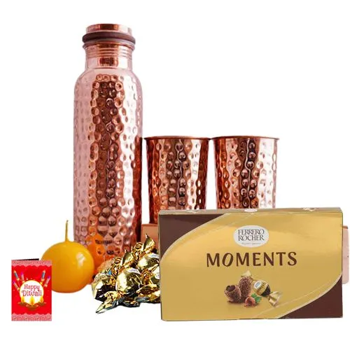 Deliver this amazing gift of Drink Pure - Copper Bottle N Ferrero Rocher Duo to deliver happiness into the lives of the people you love. This amazing hamper comes with -