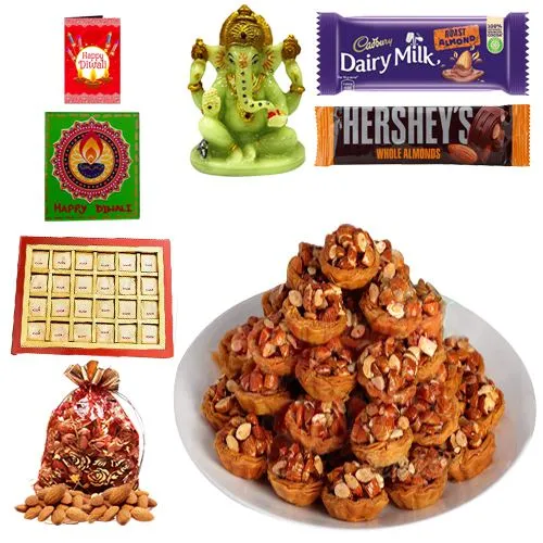 Deliver happiness by gifting this Awesome Almond Tart Baklava with Choco Binges to your relatives and friends. This Diwali Gift include -