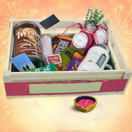 The Diwali Bliss: Chocolates, Fruits, Diya Hamper is the perfect gift to share with loved ones, spreading happiness and joy during this festive season.