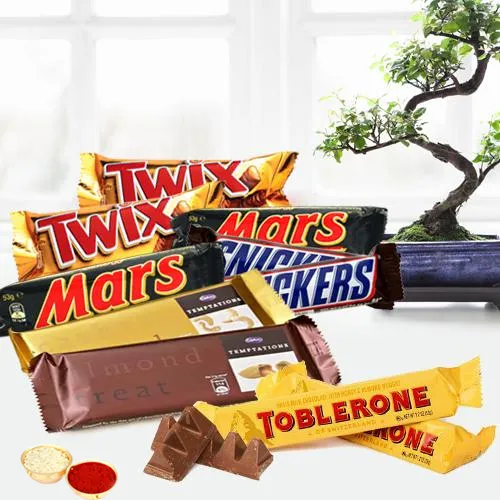 It contains 2pcs each of Cadbury Temptation, Toblerone, Twix, Snickers and Mars with free Roli Tilak and Chawal.