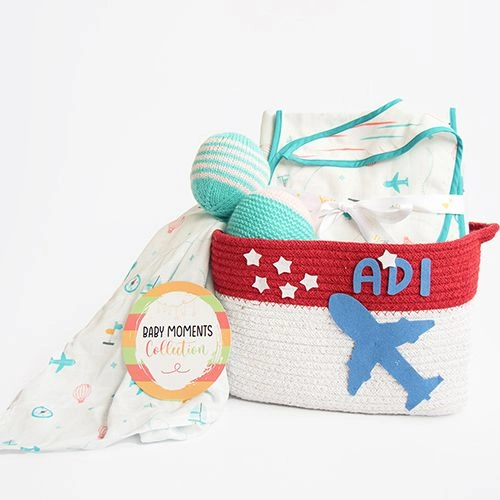 *Note - Colour- Blue, Age - 0 to 3 Yrs, Gentle Cycle, Use Mild Detergents, No Bleach, Tumble Dry Low.  PS- Personalisation (if any) could be on Muslin Blanket/ Basket or Both.