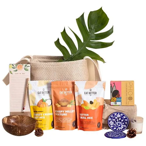Deliver happiness by gifting this Impressive Jute Basket of Gourmet n Decor Delights to your relatives and friends. A beautiful gift with a sustainable theme is sure to stand out and impress even the most selective of people. The nine items that make a wonderful hamper include -
