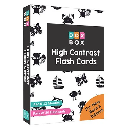 Boost your babys visual development with our Doxbox High-Contrast Flashcards. Research indicates that newborns can see only black, white, and gray during the early months. These high-contrast cards are perfect for this stage, stimulating your infant’s visual sense and helping to develop their vision. The pack includes 30 beautifully designed cards that can be placed around the nursery, hung on the crib, or used during tummy time. Each card features bold, high-contrast images that captivate and engage your baby, fostering cognitive development from the very start. Ideal for newborns and young infants, these cards make a thoughtful and practical gift for new parents, ensuring that your little one gets the visual stimulation they need to thrive.