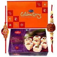 200 Gms Soan Papdi, Cadbery Celebration Pack (126 gms) with 3 Rakhi