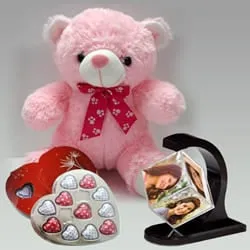 Wonderful Personalized Photo Revolving Stand with Love Teddy n Chocolate